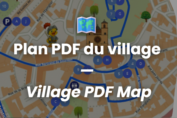 Suivez le parcours à travers le village, découvrez les lieux historiques et repérez facilement les lieux pratiques pour profiter pleinement de votre visite.
